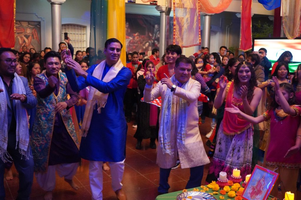 La ceremonia concluyó con el encendido de velas y la puja, un ritual espiritual característico del Navratri. Finalmente, se entregó un presente al embajador Vadhwana como muestra de gratitud, y el evento continuó con más música y baile, cerrando así una jornada histórica para la cultura en Oruro.
