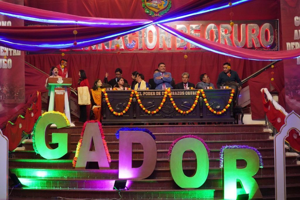 La ceremonia también contó con la asistencia del vicepresidente de la Asamblea Legislativa Departamental, Ausberto Condori; Sonia Rocha de la Cámara de Comercio de Oruro; y el secretario departamental de Cultura y Turismo, Miguel Fernando Lupa Pérez.