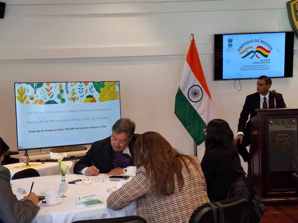 En el marco de la misión diplomática que realiza en el país, la Embajada de la India en Bolivia llevó a cabo el primer Simposio de Medios en el Club de Tenis de la ciudad de La Paz. Este evento, que tuvo lugar el martes 8 de octubre de 2025, permitió a los periodistas aprender sobre diversas áreas del país asiático, incluyendo economía, cultura, minería, educación y salud.