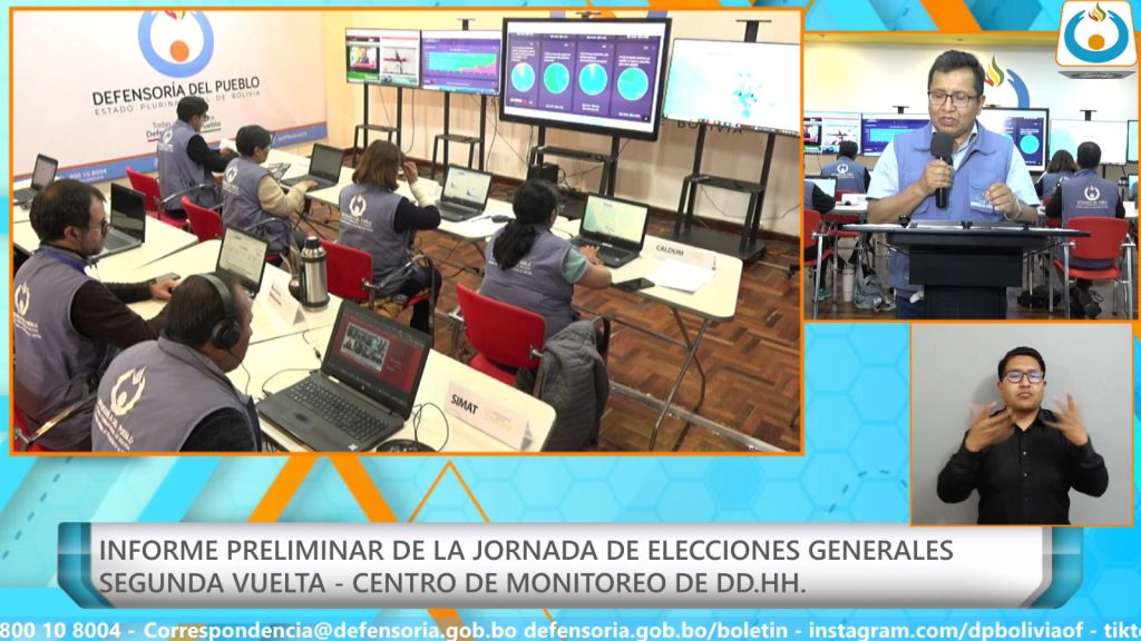 El Defensor del Pueblo, Pedro Callisaya, ha presentado un informe preliminar sobre el monitoreo de la jornada electoral. Este proceso se llevó a cabo de manera regular y se registraron 414 denuncias de vulneración de derechos en todo el país. Para supervisar más de 900 recintos electorales y mil mesas de sufragio, se desplegó un equipo de aproximadamente 900 personas. En general, el proceso electoral se desarrolló sin mayores contratiempos, con la atención a situaciones administrativas que fueron superadas en su mayoría.