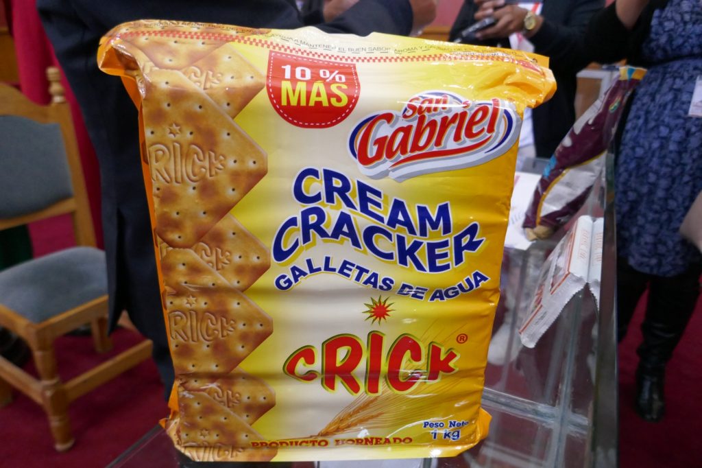 Los precios adjudicados para cada uno de los productos son los siguientes: la galleta cracker de un kilo se adjudicó a 30 bolivianos, el chocolate Harasic a 37.50 bolivianos, el api morado de Miura a 22 bolivianos y la leche con chocolate en polvo a 29.80 bolivianos.