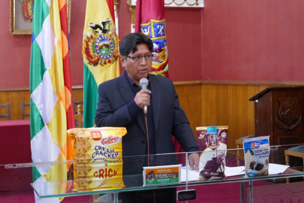 Ajhuacho explicó que en agosto se inició el proceso de contratación, el cual fue publicado en el Sistema de Contrataciones Estatales (Sicoes). Se solicitaron cuatro productos específicos: un kilo de galleta cracker, 330 gramos de chocolate en barra, un kilo de api morado y medio kilo de leche con chocolate en polvo.