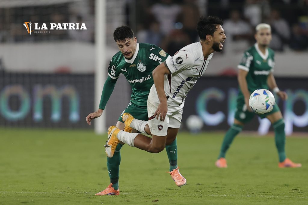 Solo en dos ocasiones en el primer tiempo Palmeiras logró zafarse de la presión y dominio persistente del local, pero los disparos de Raphael Veiga pasó sobre el arco y Alexander Domínguez le bloqueó el remate de Vitor Roque.