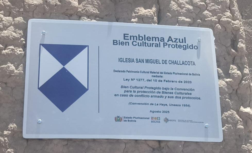 La iglesia colonial San Miguel de Challacota recibió el Emblema Azul de la Organización de las Naciones Unidas para la Educación, la Ciencia y la Cultura (Unesco) el 24 de octubre. Este reconocimiento internacional destaca su valor como Patrimonio Cultural Material Inmueble del Estado Plurinacional de Bolivia.