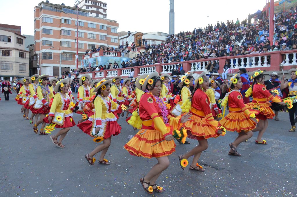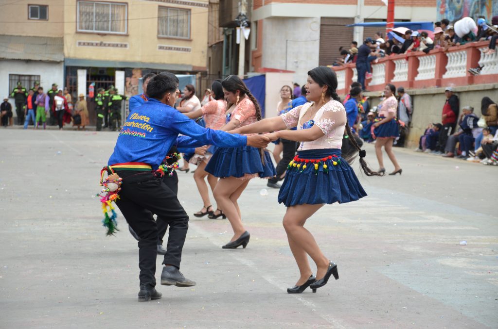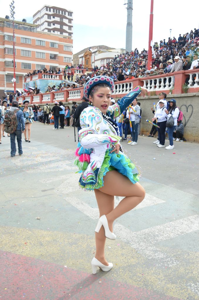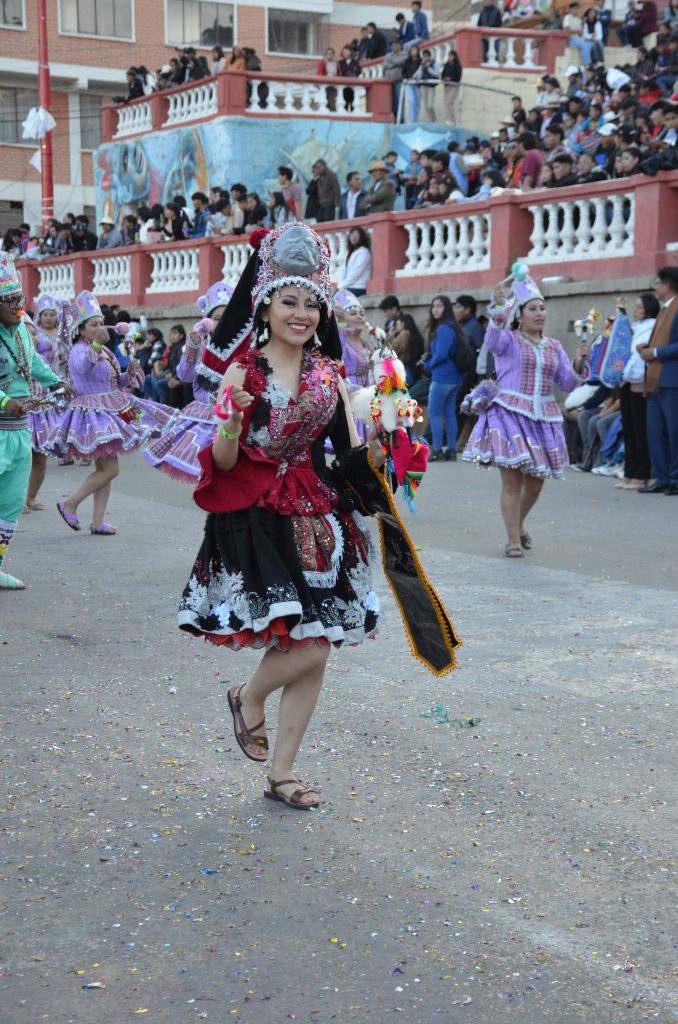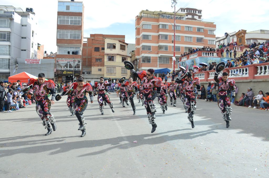 La jornada continuó con el paso de universidades e institutos invitados. Posteriormente, cada una de las facultades de la UTO hizo su ingreso, mostrando danzas propias del Carnaval de Oruro, así como otras que son parte del folklore boliviano.