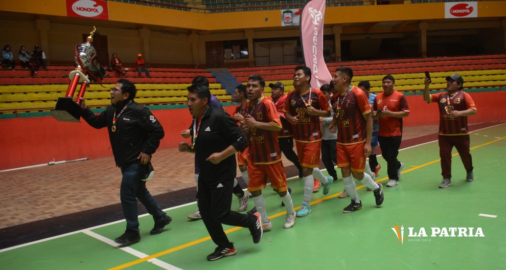 Luego de dos intensas jornadas de competencia, el fin de semana concluyó la trigésima segunda versión del Campeonato Nacional de Clubes Campeones en la disciplina de futsal, controlada por la Federación Nacional Deportiva de la Administración Pública (Fenadap) y organizada la Asociación Deportiva de la Administración Pública Oruro (Adapo). El equipo Servicio Nacional de Propiedad Intelectual (Senapi) de La Paz se consagró campeón del certamen.
