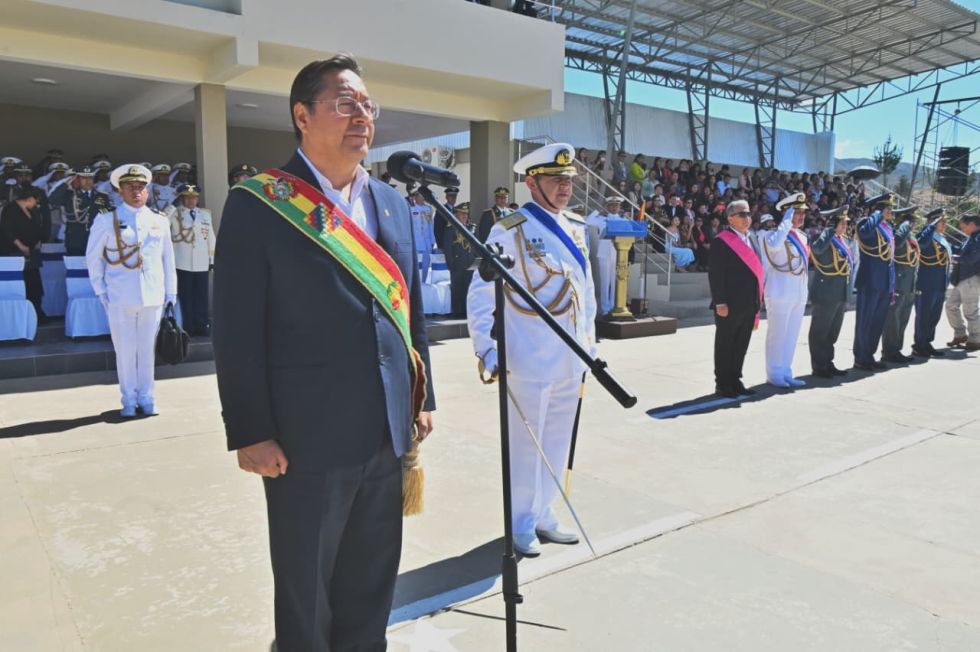 Arce destacó que cada aniversario de las Fuerzas Armadas representa “una renovación del compromiso con el pueblo boliviano, el mismo que juraron defender, así como la Constitución que ese pueblo escribió con sus propias manos”.