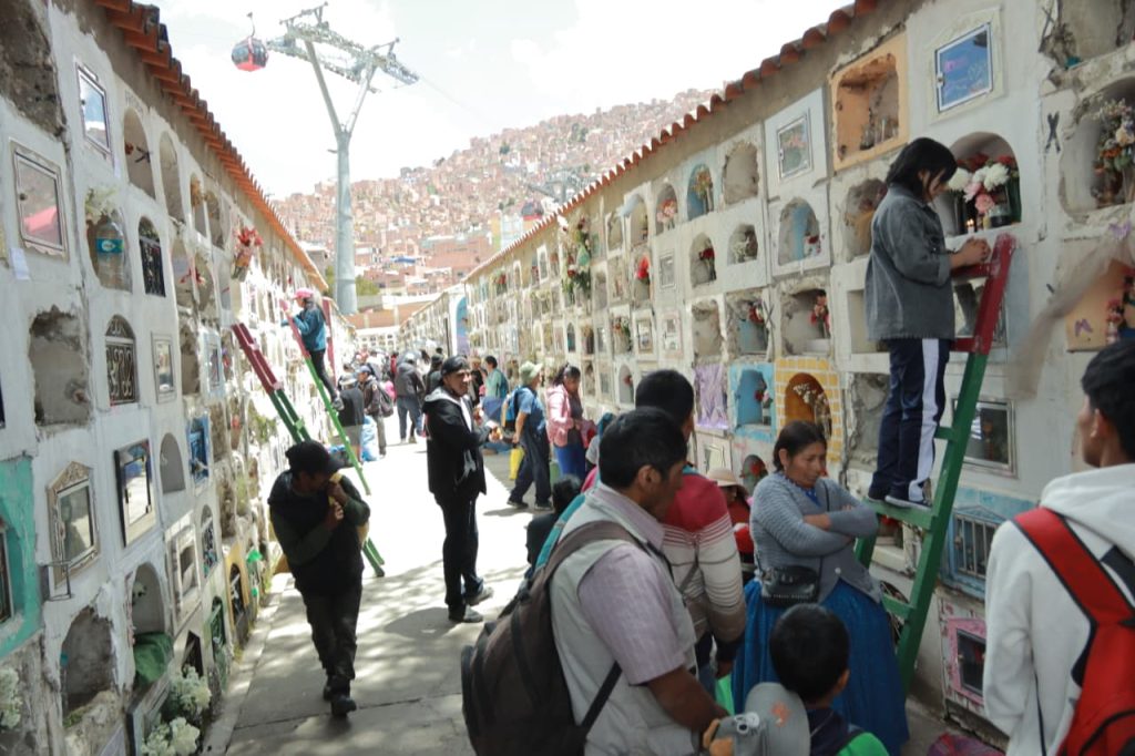 El comandante de la Policía Turística, Roberto Zambrana, indicó que 420 efectivos trabajaron durante toda la jornada, distribuidos en tres turnos. Solo se reportó un contratiempo en las afueras del cementerio, en la parada del teleférico rojo, donde un grupo de personas intentó instalar un escenario para presentaciones musicales.