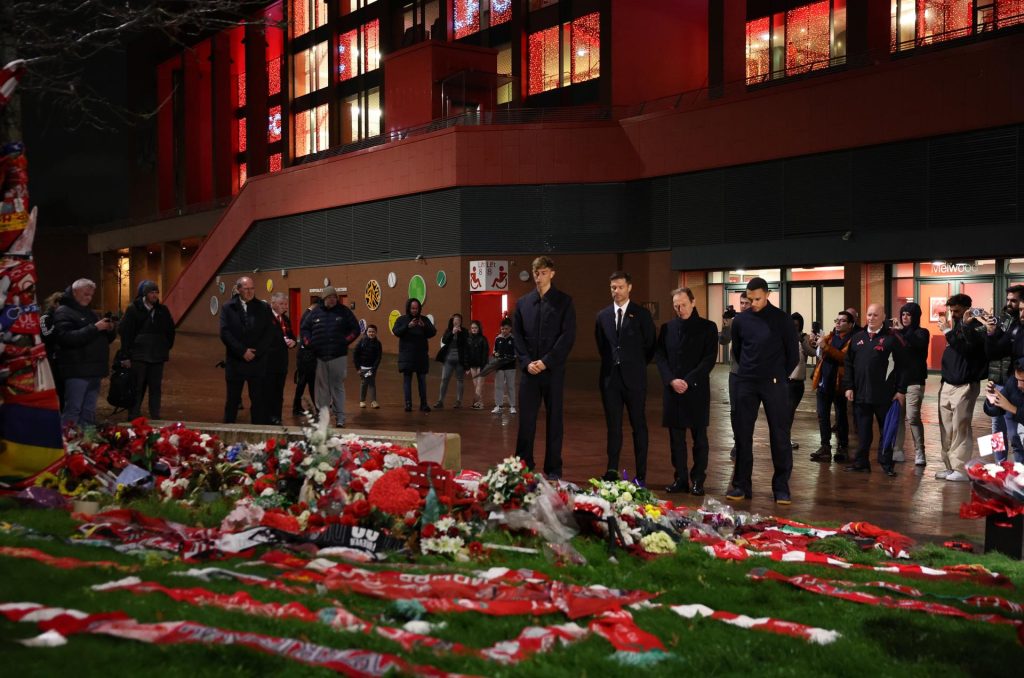 Una vez concluida la rueda de prensa, en la que tanto el central Huijsen como el entrenador Xabi Alonso compartieron sus opiniones sobre el próximo encuentro contra el Liverpool, la delegación del Real Madrid realizó la ofrenda floral. Este gesto fue una muestra de respeto hacia el jugador portugués y hacia la afición `Red` que se encontraba en el altar construido para Jota, lo que fue recibido con una emotiva ovación.