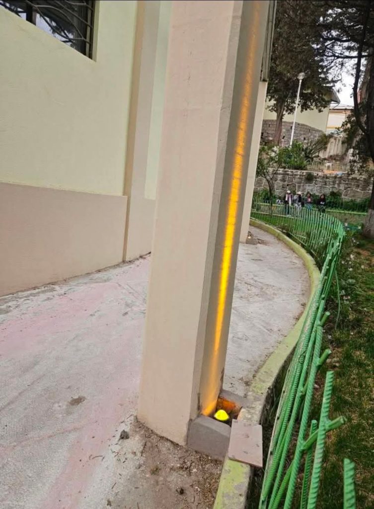 Asimismo, criticó la iluminación exterior que se implementó en la nueva fase del proyecto. Aseguró que los reflectores dirigen la luz hacia las columnas de hormigón armado recientemente incorporadas, en lugar de iluminar los elementos arquitectónicos originales. Esto contradice los principios básicos de la iluminación patrimonial.