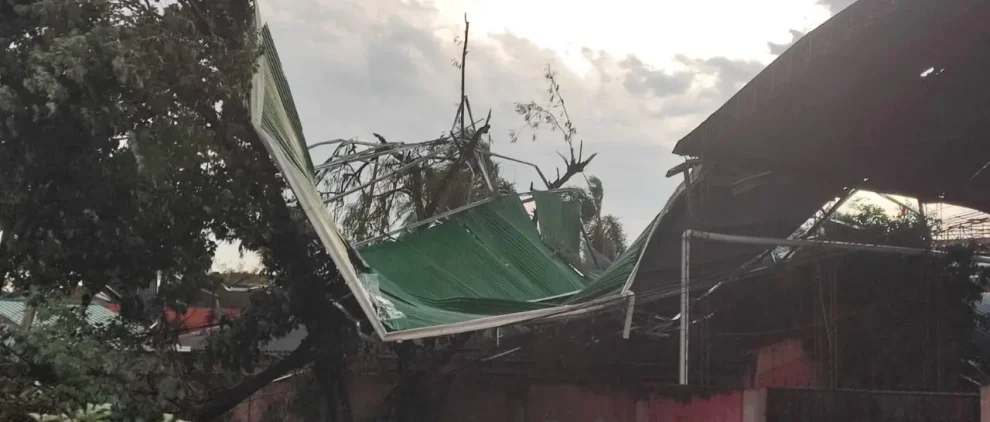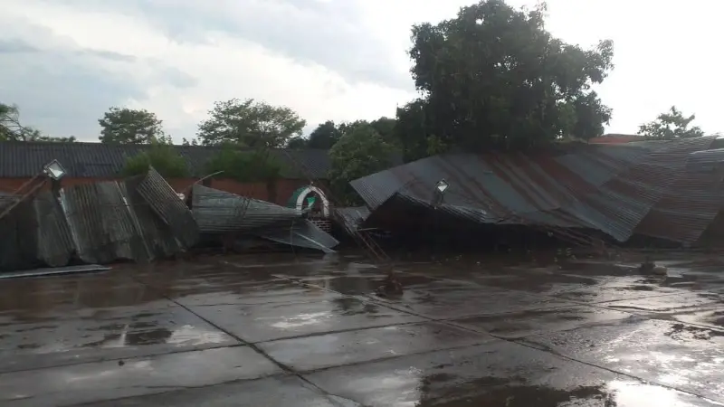 El Portal Informativo ha mostrado imágenes de la caída de tinglados en diferentes espacios. En una de las fotografías se pueden observar daños en una vivienda, mientras que en otras, las calaminas han caído sobre puestos de venta.