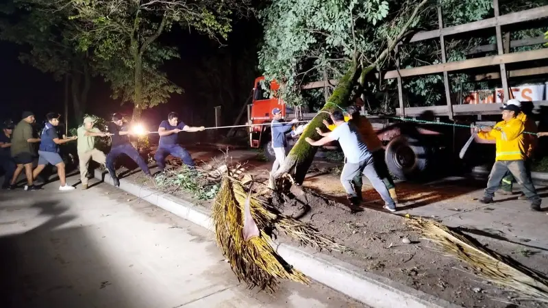 Incluso el letrero que da la bienvenida al municipio de Bermejo ha sufrido daños, ya que algunas letras han caído al suelo. “Nuestros equipos atienden de manera inmediata el corte de árboles, el despeje de ramas y la resolución de diversos incidentes provocados por el temporal, con el objetivo de restablecer la seguridad y transitabilidad en cada barrio”, destacó la publicación del Gobierno Autónomo Municipal.