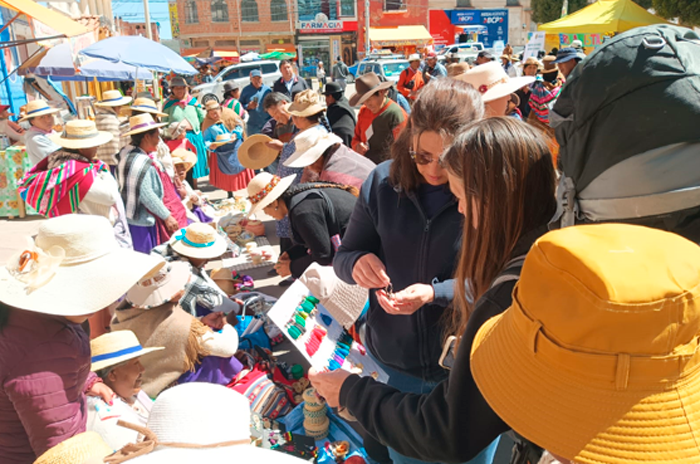 En el último día de su recorrido, las artesanas fueron invitadas a participar en la feria “Festival Agroecológica, Gastronómica y Ambiental”. Este evento fue organizado por la Fundación Prodiasur y el municipio de Copacabana, y tuvo lugar en la plaza principal el viernes reciente.