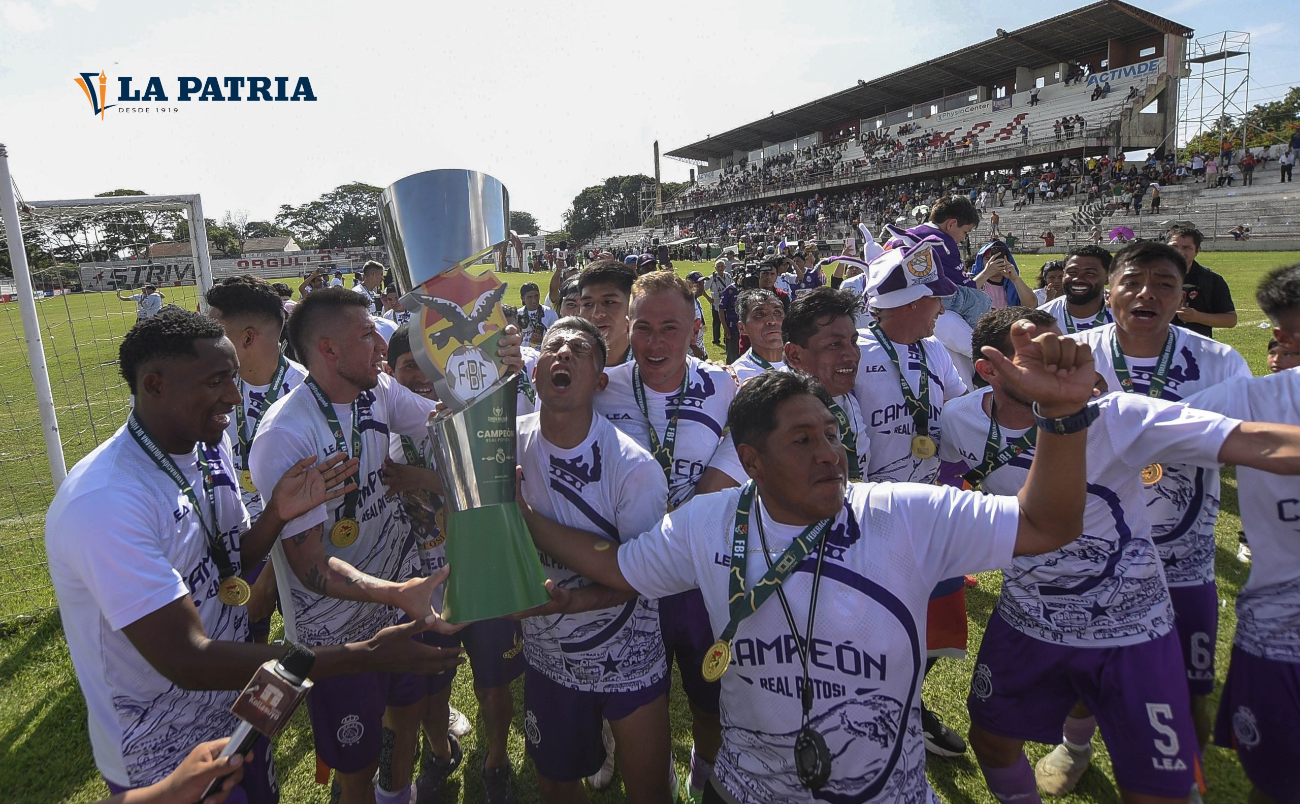 Centenares de hinchas del cuadro lila celebraron en el estadio cruceño, después de cuatro años en los cuales, los seguidores de Real Potosí estaban en silencio. La alegría era similar dentro del campo y en las graderías cuando recibieron el trofeo de campeón y el ascenso directo a la principal categoría.