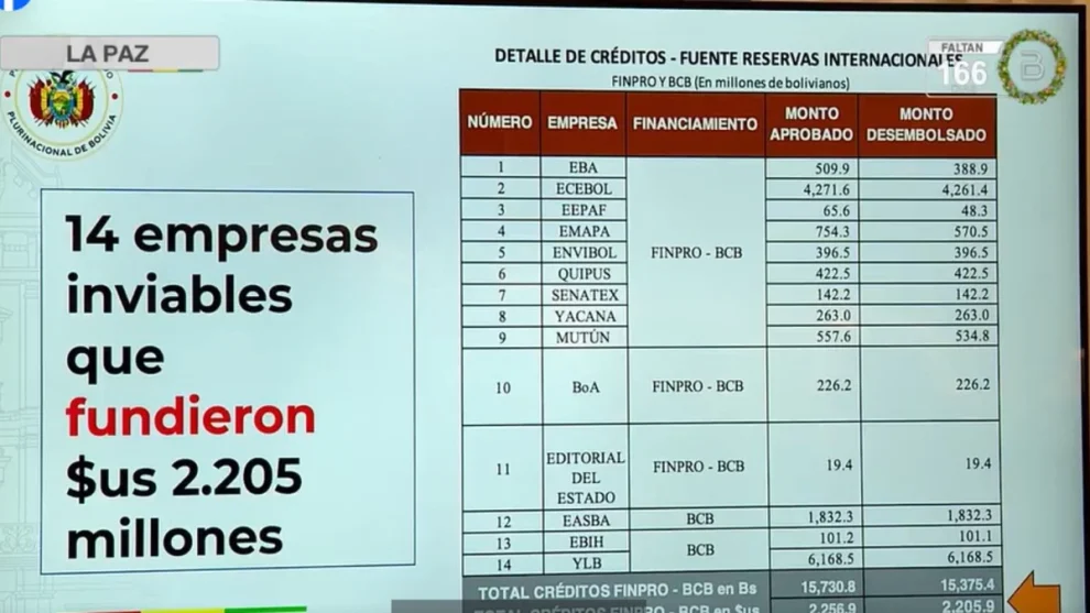 El 28% de los recursos invertidos se destinó a 14 empresas que resultaron ser inviables y se convirtieron en “instrumentos de corrupción”. De estas, cuatro ya han cerrado y cinco están en “quiebra técnica”. Estas 14 empresas llegaron a consumir 2.205 millones de dólares de las reservas internacionales.