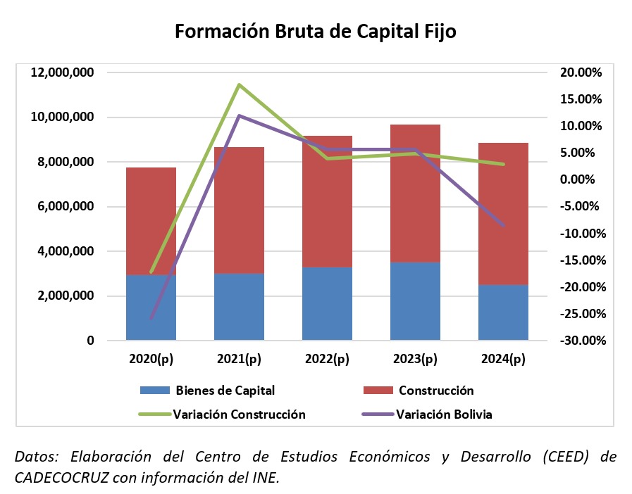 En cuanto a la inversión, que se mide a través de la formación bruta de capital fijo, se registró un crecimiento del 2,93%. En contraste, el resto de la economía sufrió una caída de más del 8%. La formación de capital en la construcción representó el 71% del total en la gestión anterior.