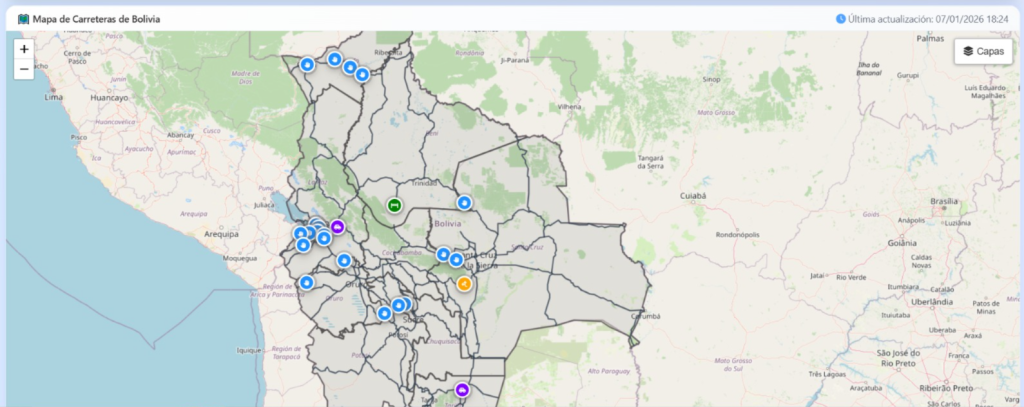 Según el reporte actualizado de la Administradora Boliviana de Carreteras, el mapa de transitabilidad ha identificado al menos 20 puntos de bloqueo en distintas rutas del país. Los departamentos de La Paz y Pando son los más afectados por las medidas de presión adoptadas por diversos sectores sociales.