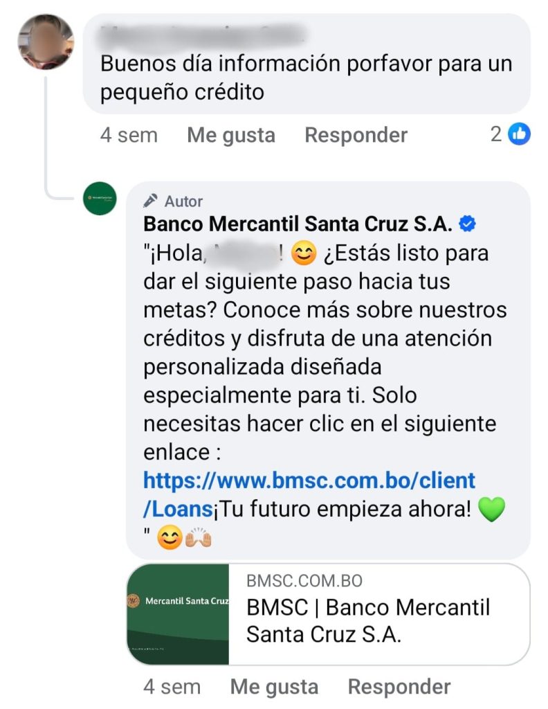 La analista de identidad institucional financiera, María René Aguirre, explicó en palabras sencillas que un crédito es una operación financiera donde un banco presta una cantidad de dinero para algún fin; detalló que los clientes recurrentes en su fuente laboral son el sector micro que busca hacer crecer sus negocios, y quienes buscan un crédito de consumo para comprar un inmueble, ante la dificultad de acceder a un crédito de vivienda social ahora.
