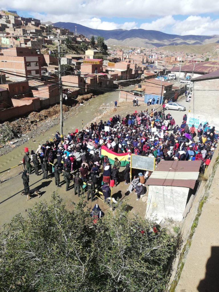 Durante la manifestación, los participantes expresaron su descontento hacia la Empresa Minera Huanuni, acusándola de contratar a personas que no son del municipio. Los residentes locales denunciaron que siguen sin oportunidades de empleo.